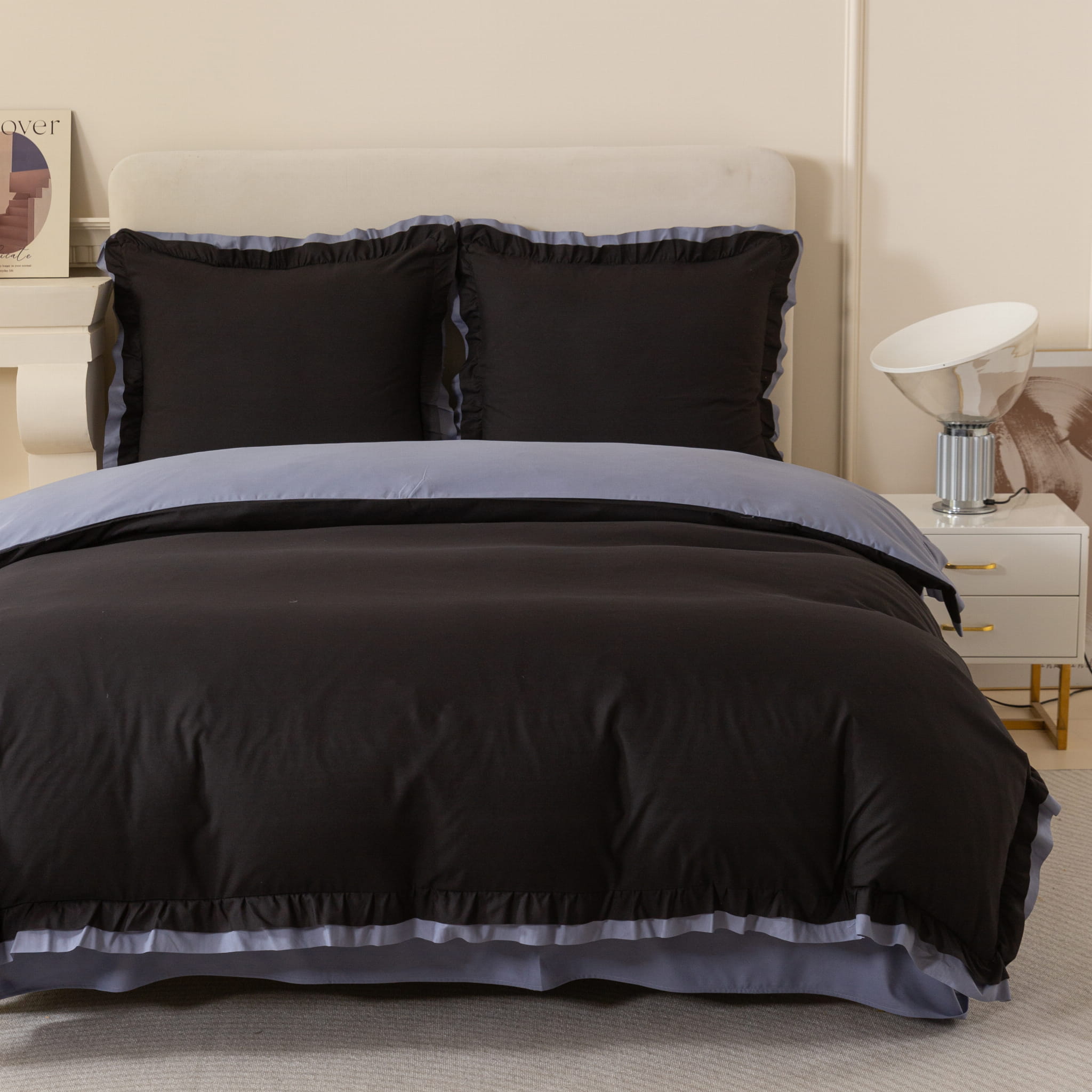Pościel dwukolorowa z falbanka 200x220 czarny/szary