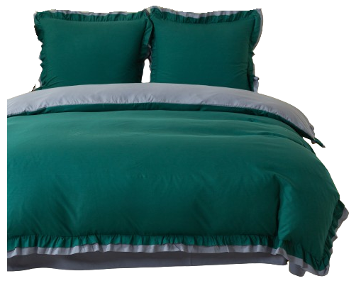 Pościel dwukolorowa z falbanka 200x220 zielony/szary
