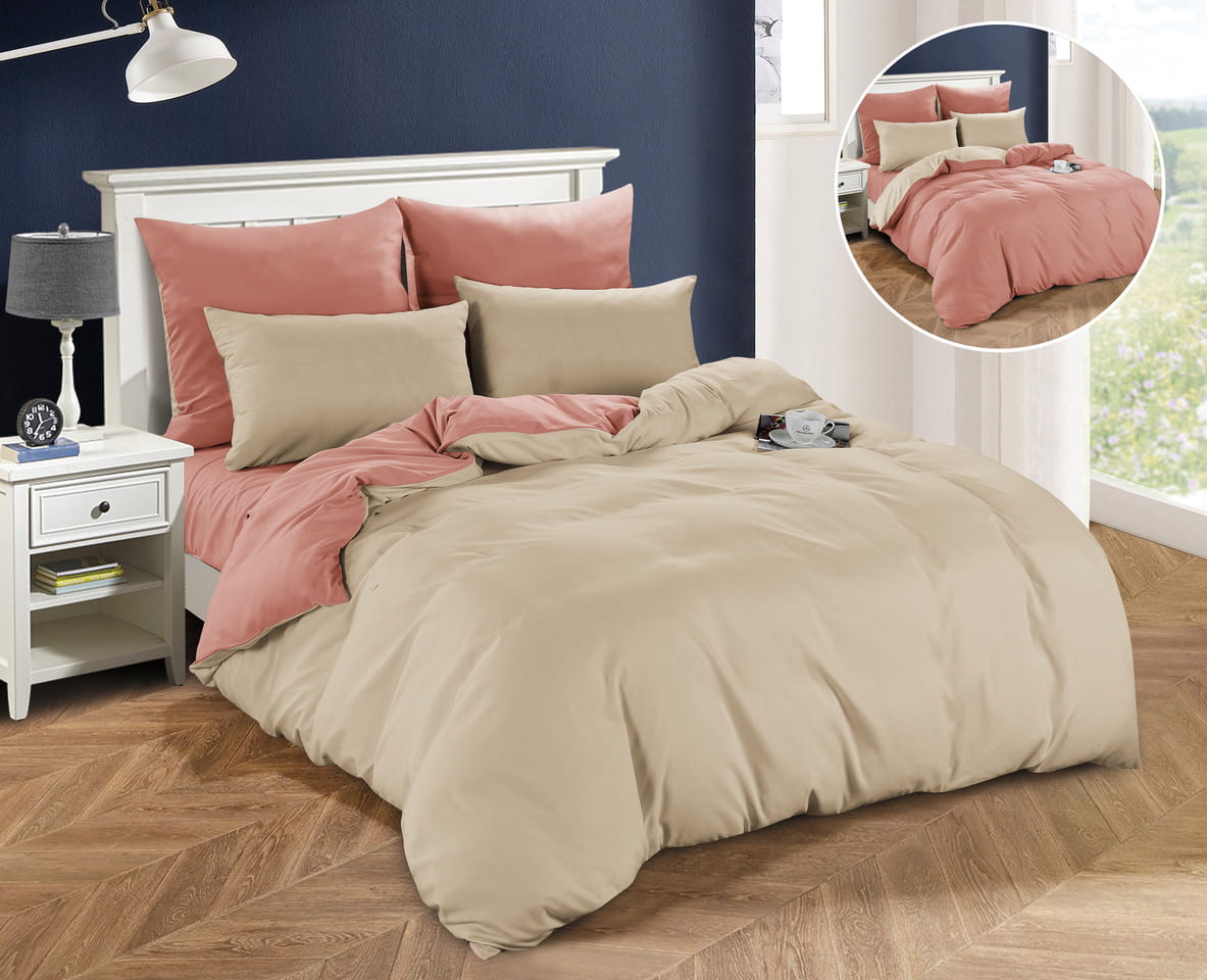 Pościel dwustronna 140x200 gładka beż/rudy