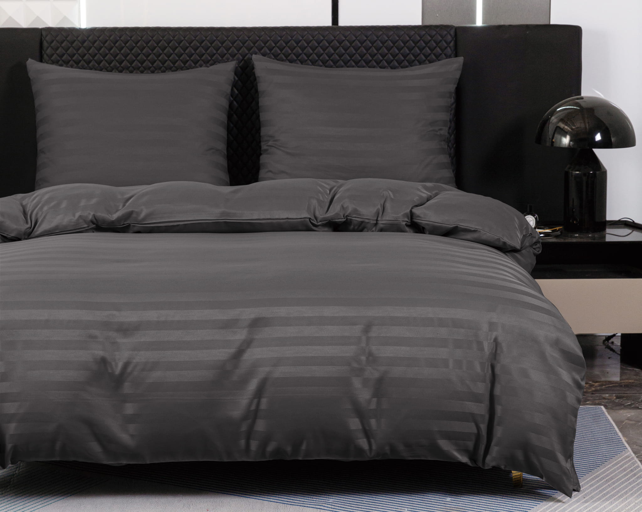 Pościel jednokolorowa 160x200 w paski grafitowa