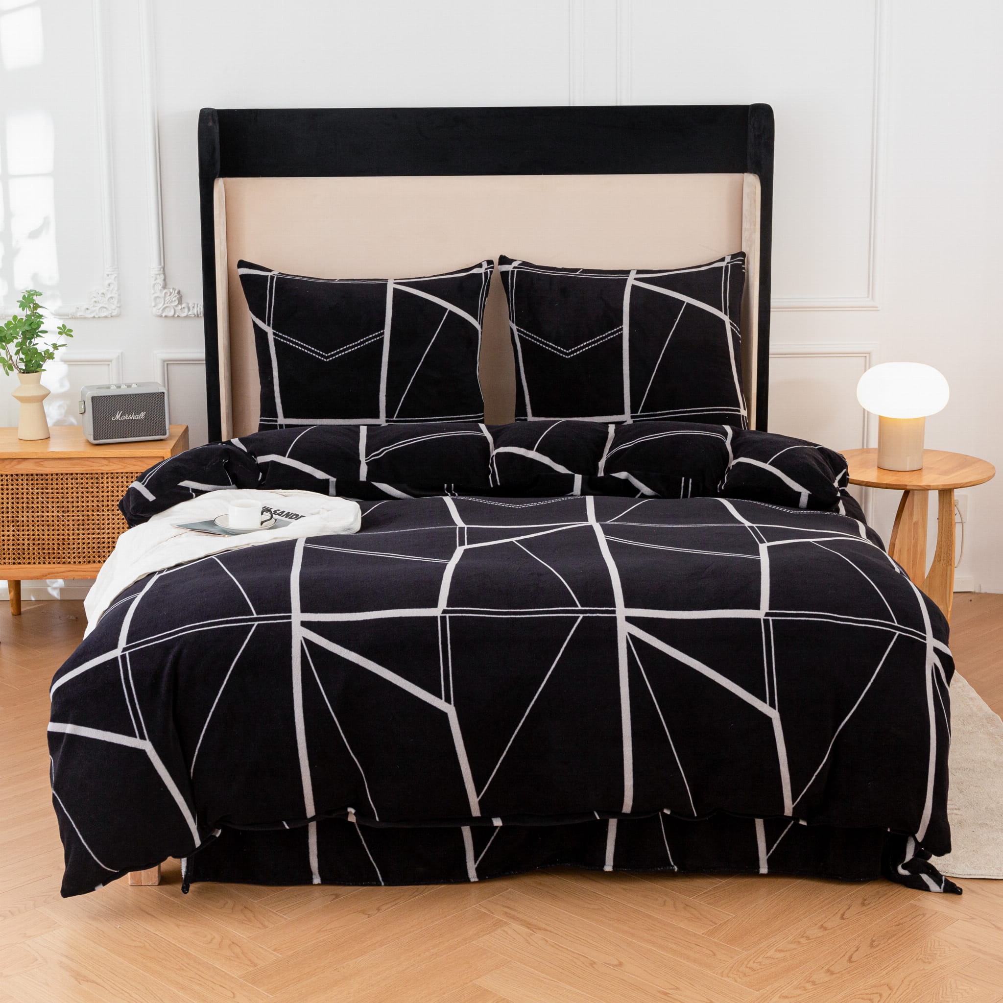 Pościel polarowa premium 160x200 "MIŚ" mikrofibra czarna geometria