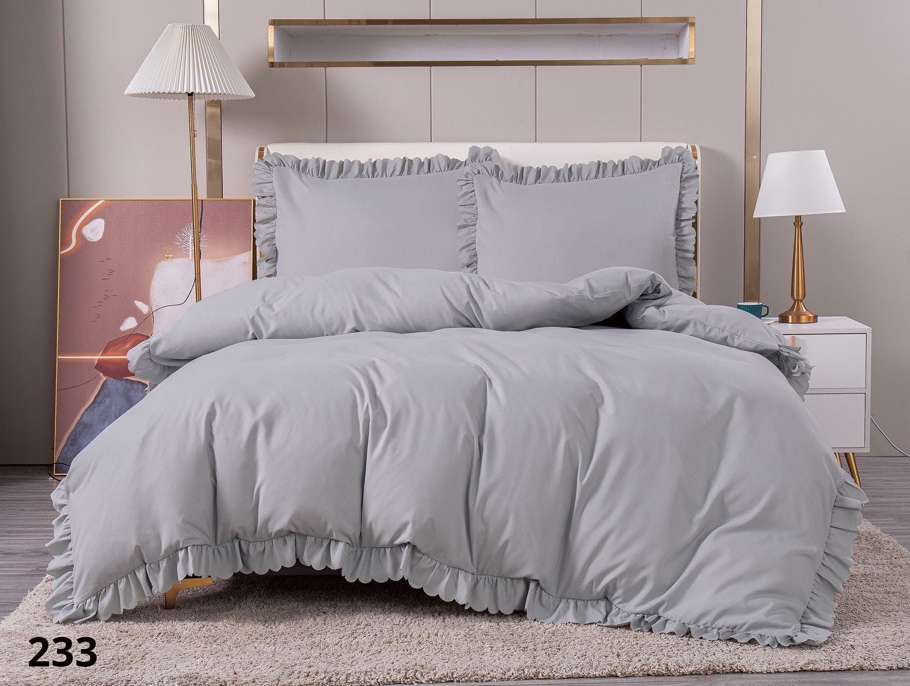 Pościel z falbanką 160x200 jasno szara