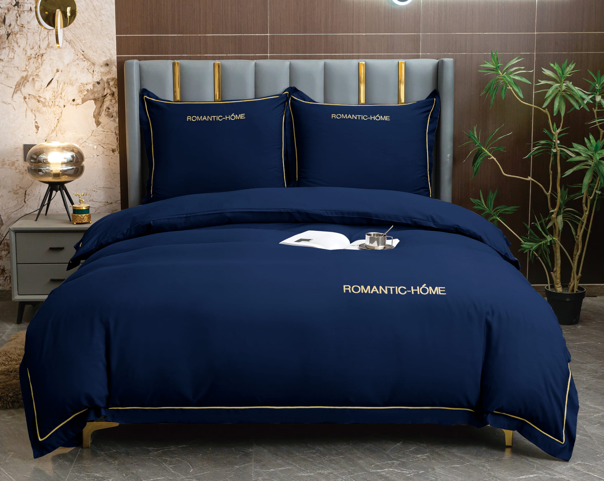 Pościel z lamówką oraz falbanką 140x200 granatowa