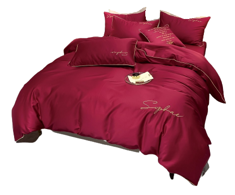 Pościel ze złota lamówką 140x200 bordowa
