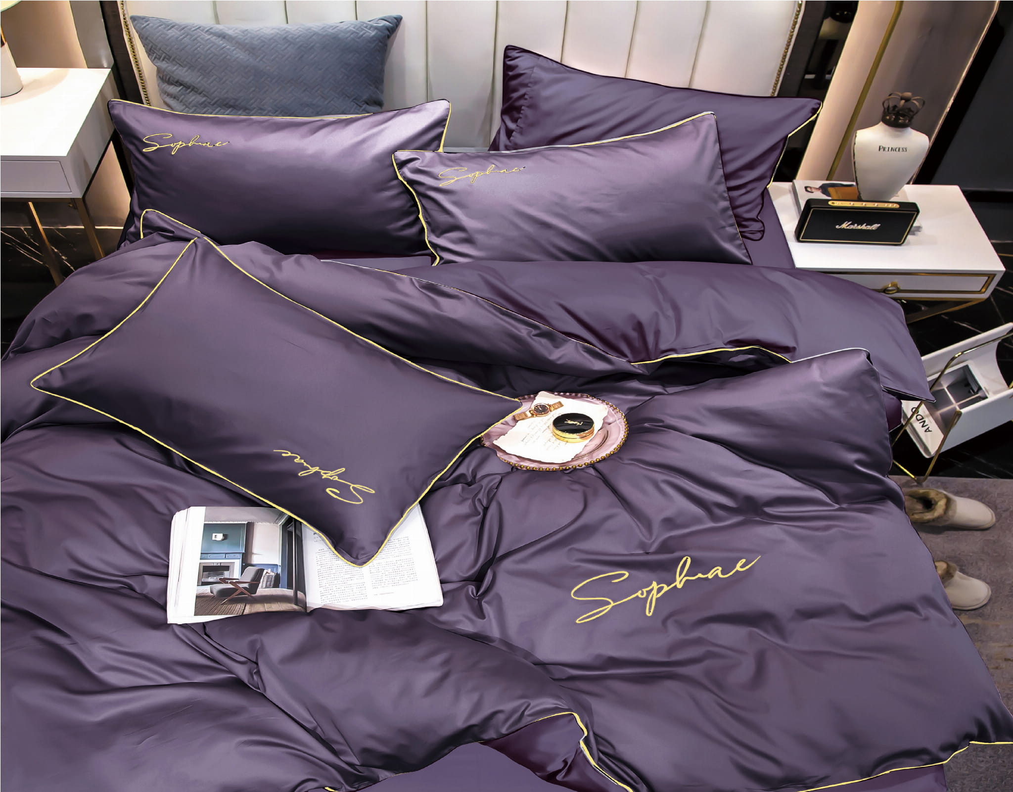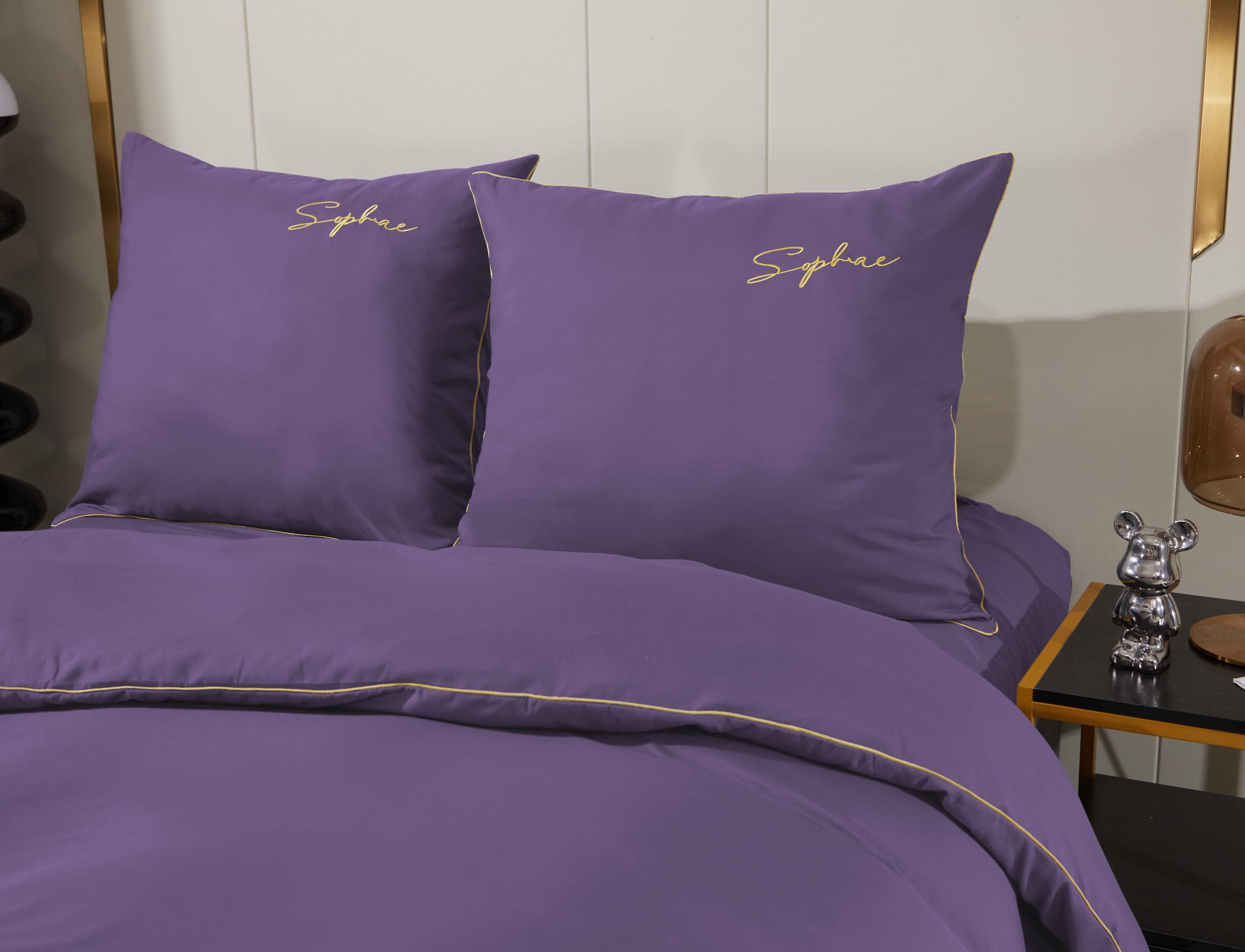 Pościel ze złota lamówką 140x200 fioletowa