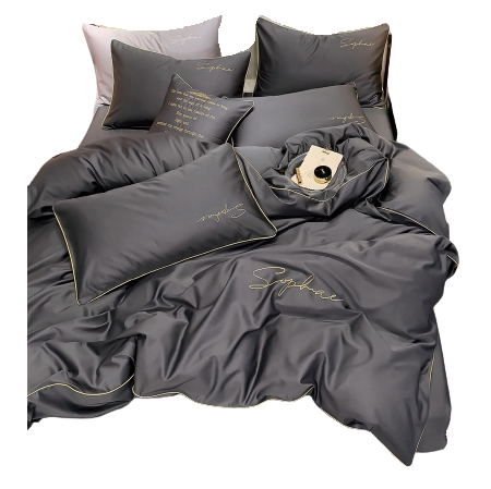 Pościel ze złota lamówką 140x200 grafitowa